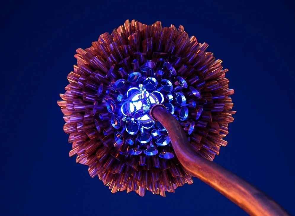 A 22 ft tall interactive flower that uses data / sensors to respond to movement, creating unique breathtaking light arrays day and night.