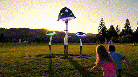 Our goal for “Shroomin Bloomin” is to capture the magic of mushrooms as well as mycelium - the natural internet that infuses all landscapes and connects all communication for plant-life. We envision these larger-than-life Shrooms to be connected and intertwined within this network of mycelium. These root systems send communication and nutrients through the passageways of mycelium. With light, sound, and interaction we will display this melodic relationship, using multiple levels of interaction to encourage wonder, discovery and exploration.